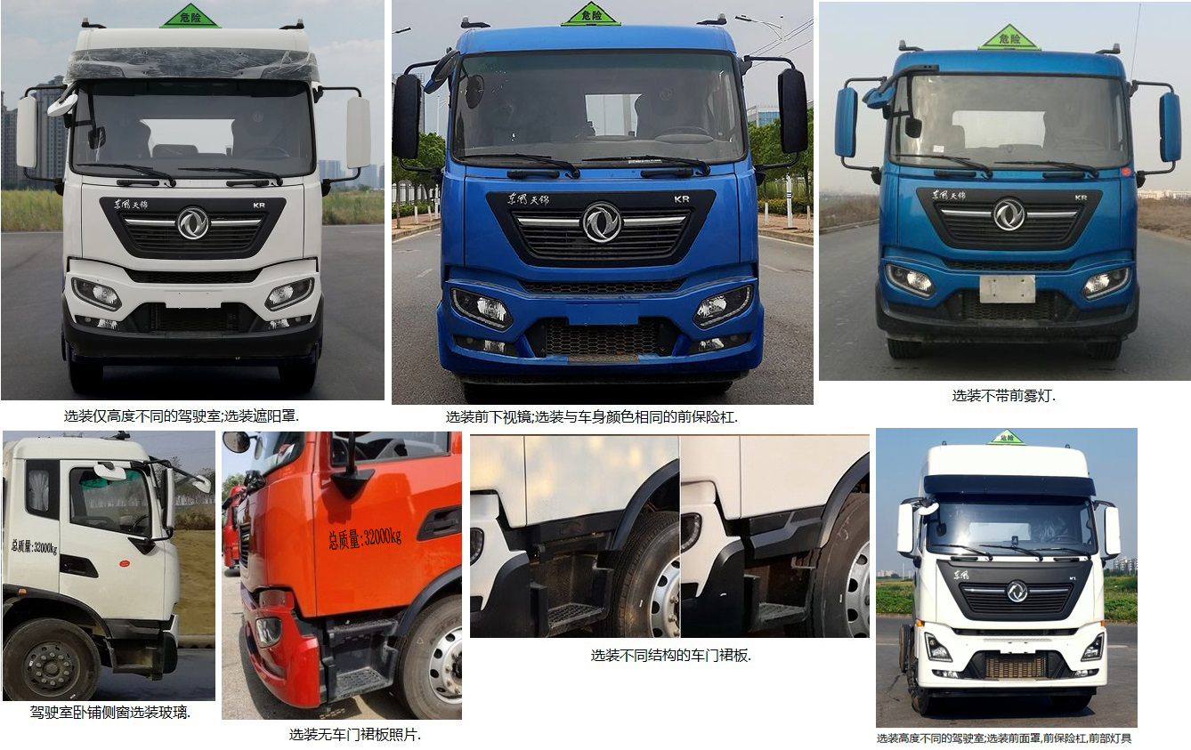 | 其它: | 該車(chē)適用于危險(xiǎn)品運(yùn)輸,運(yùn)送危險(xiǎn)貨物車(chē)輛類(lèi)型為:FL型。準(zhǔn)運(yùn)介質(zhì)最大密度:830千克/立方米,罐體總?cè)萘?6.7立方米,罐體有效容積25.43立方米,罐體外形尺寸(長(zhǎng)×寬×高)(mm):9200×2200×1620。側(cè)防護(hù)材料為鋁合金,螺栓連接;后防護(hù)材料為Q235,螺栓連接,截面尺寸(mm)80×140,下邊緣離地高500mm。僅選用排氣管前置、限速裝置(限速80km/h)、前輪盤(pán)式制動(dòng)及子午線(xiàn)輪胎的底盤(pán),轉(zhuǎn)向輪安裝輪胎爆胎應(yīng)急防護(hù)裝置,后軸采用空氣懸架。安裝帶有衛(wèi)星定位功能的行駛記錄儀。EBS系統(tǒng)型號(hào)/生產(chǎn)企業(yè)為:EBS5/東科克諾爾商用車(chē)制動(dòng)系統(tǒng)(十堰)有限公司。發(fā)動(dòng)機(jī)/油耗值(L/100km)對(duì)應(yīng)關(guān)系為:D6.7NS6B320/37.6。隨底盤(pán)選裝駕駛室。選裝ETC。選裝后爬梯樣式。罐體上部選裝上走道,第二軸選裝弧形擋泥板。僅采用軸距1995+4350+1350mm。 | ||