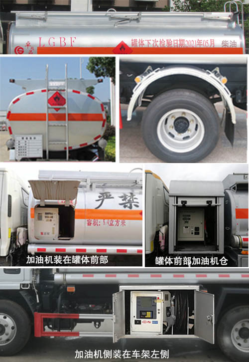| 配置 | 1、該車適用于危險品運輸,運送危險貨物車輛類型為:FL型,類項號:3。運輸介質(zhì):柴油、煤油、汽油,密度:830、800、700千克/立方米,罐體有效容積4.5立方米,罐體外形尺寸(長×寬×高)(mm):①加油機側(cè)裝在車架左側(cè):3800×1600×1000,②加油機裝在罐體前部:3800×1750×1220(加油機倉長800);③選裝罐體前加油機倉:3000×1750×1220。罐體上部選裝折疊護欄、選裝無上走道;選裝弧形擋泥板。2、側(cè)防護采用冷彎型鋼/Q235,螺栓連接。后防護采用冷彎型鋼/Q235,焊接,截面高100mm,截面寬50mm,下邊緣離地高450mm。加油機型號及生產(chǎn)企業(yè):BL1111Z/珠海市貝林加油設(shè)備有限公司中山分公司,HS1812B/托肯恒山科技(廣州)有限公司,SKES-1112/恒和嘉華科技有限公司(上海伯萊機械有限公司),SK20QF-111A、SK20QF-222A/鄭州三金石油設(shè)備制造有限公司,CS20D1110F/正星科技有限公司,JSK-70B1121CZ,JSK-70B1121C,JSK45B1121C/穩(wěn)恩佳力佳(北京)石油化工設(shè)備有限公司, ZH6444/佛山市眾澤機電科技有限公司, XTST121BF1/邢臺正潤通科技發(fā)展有限公司,TA-1111KFJ/沈陽航天新陽機電有限公司。3、隨底盤選裝前面罩,前保險杠,前組合燈具,選裝左右油箱位置。僅選用排氣管前置、限速裝置(限速80km/h)、前輪盤式制動及子午線輪胎的底盤,安裝帶有衛(wèi)星定位功能的行駛記錄儀。ABS廠家及型號:襄陽東風(fēng)隆誠機械有限責(zé)任公司/ABS/ASR-24V-4S/4M。轉(zhuǎn)向輪安裝輪胎爆胎應(yīng)急防護裝置。 | ||
