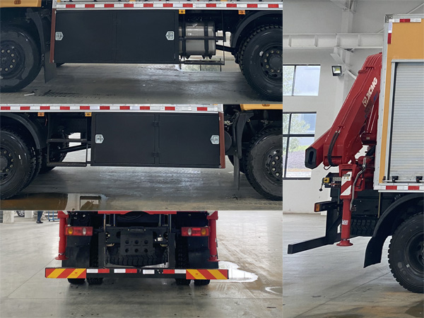 | 其它: | 1、該車主要用于搶險救災(zāi)、賽事活動等的應(yīng)急照明支援;主要專用裝置:照明系統(tǒng),發(fā)電機組,吊機等;廂體頂部密閉,不可開啟。2、側(cè)防護為裙邊結(jié)構(gòu),材料Q235;后防護材料采用Q235,螺栓連接,截面尺寸125×60mm,下邊緣離地高485mm。3、ABS型號/生產(chǎn)廠家:3631010-C2000/東科克諾爾商用車制動系統(tǒng)(十堰)有限公司。 | ||