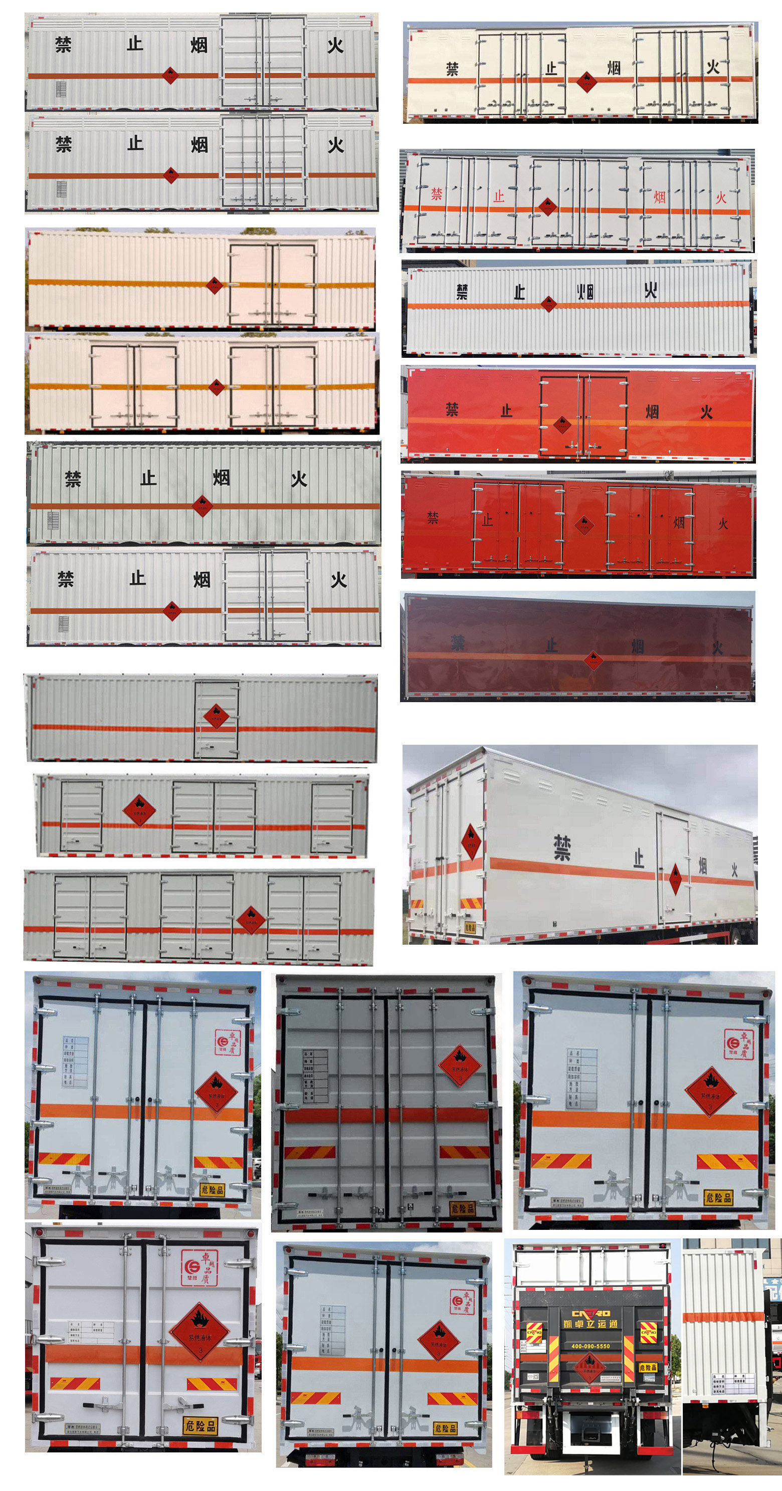 配置  1、該車為危險(xiǎn)品運(yùn)輸車.運(yùn)輸具有**容器(瓶)包裝的易燃液體物品.運(yùn)送危險(xiǎn)物品類項(xiàng)號(hào):3類.廂體頂部封閉不可開(kāi)啟.2、側(cè),后防護(hù)材料均為Q235,螺栓連接,后防護(hù)截面尺寸(mm)120×60,下邊緣離地高490mm.3、僅選用排氣管前置、限速裝置(限速80km/h)、前輪盤式制動(dòng)及子午線輪胎的底盤,轉(zhuǎn)向輪安裝輪胎爆胎應(yīng)急防護(hù)裝置.后軸采用空氣懸架.安裝帶有衛(wèi)星定位功能的行駛記錄儀.EBS型號(hào)/廠家:EBS5/東科克諾爾商用車制動(dòng)系統(tǒng)(十堰)有限公司.發(fā)動(dòng)機(jī)/油耗值(L/100km)對(duì)應(yīng)關(guān)系為:B6.2NS6B230/36.1,B6.2NS6B245/36.1.整車長(zhǎng)度/軸距/后懸對(duì)應(yīng)關(guān)系為(mm):10180/1995+4200/2555,11080/1995+5000/2655.隨底盤選裝駕室.該車型可選裝ETC車載裝置.廂體側(cè)面選裝開(kāi)門型式及位置,選裝不帶側(cè)開(kāi)門,選裝貨廂平面或瓦楞結(jié)構(gòu);廂體側(cè)面板選裝開(kāi)百葉窗,選裝后部樣式.選裝尾板,尾板質(zhì)量為550kg,尾板收起狀態(tài)水平長(zhǎng)度為290mm.