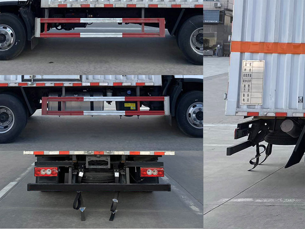 | 其它: | 1、該車適用于運(yùn)輸危險(xiǎn)品。廂體頂部封閉不可開啟。運(yùn)輸具有獨(dú)立容器(瓶)包裝的物品,運(yùn)送危險(xiǎn)物品類項(xiàng)號(hào):8。2、側(cè),后防護(hù)材料均為Q235,螺栓連接;后防護(hù)截面尺寸100×50mm,下邊緣離地高410mm。廂體側(cè)面選裝開門型式及位置,選裝不帶側(cè)開門,選裝瓦楞板結(jié)構(gòu);選裝百葉窗。3、隨底盤選裝排半駕駛室,選裝導(dǎo)流罩。僅選用排氣管前置、限速裝置(限速80km/h)、前輪盤式制動(dòng)及子午線輪胎的底盤;轉(zhuǎn)向輪裝備輪胎爆胎應(yīng)急防護(hù)裝置。安裝帶衛(wèi)星定位功能的行駛記錄儀。ABS系統(tǒng)型號(hào):ABS-VI.E;生產(chǎn)企業(yè):廣州瑞立科密汽車電子股份有限公司.ABS系統(tǒng)型號(hào):ABS-E;生產(chǎn)企業(yè):威伯科汽車控制系統(tǒng)(中國)有限公司.ABS系統(tǒng)型號(hào):ABS8.8 ECU 24V,生產(chǎn)企業(yè):東科克諾爾商用車制動(dòng)系統(tǒng)(十堰)有限公司。發(fā)動(dòng)機(jī)/油耗值(L/100km)對應(yīng)關(guān)系為:CY4SK261/16.09,D30TCIF1/16.19,F2.8NS6B156/15.39,F3.8NS6B156/14.90??蛇x裝ETC車載裝置。 | ||