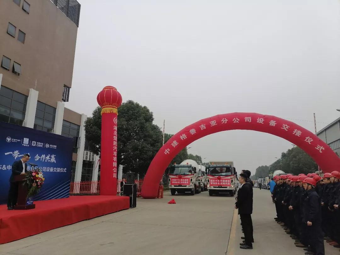 1月3日,為了積極響應(yīng)一帶一路方針,北汽福田協(xié)同湖北楚勝加強(qiáng)同工程承包類央企的戰(zhàn)略合作,強(qiáng)強(qiáng)聯(lián)合,開拓海外市場(chǎng)業(yè)務(wù);福田公司借此次在我公司委改的關(guān)于中建格魯吉亞批量訂單的機(jī)會(huì),聯(lián)合中建公司人員在我公司舉行了盛大的交車儀式。